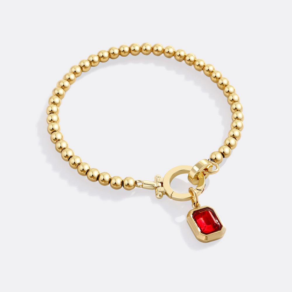 Elevate your everyday style with our Baguette Birthstone Charm on Beaded Bracelet. This elegant piece features polished beaded detailing paired with a striking baguette-cut birthstone charm that adds a meaningful pop of color and sparkle.