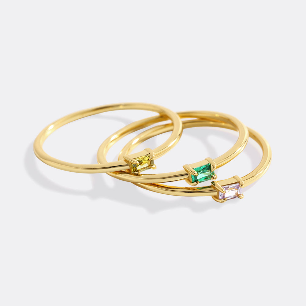 Dainty Baguette Birthstone Stacking Ring