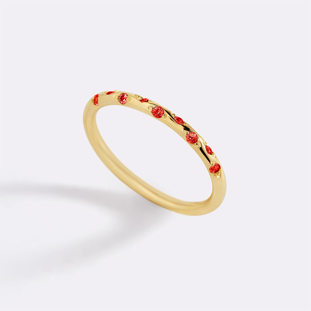 A delicate fusion of personal style and celestial charm. This dainty birthstone band adds a subtle sparkle to your everyday look, while its constellation design brings a touch of the cosmos to your fingertips.