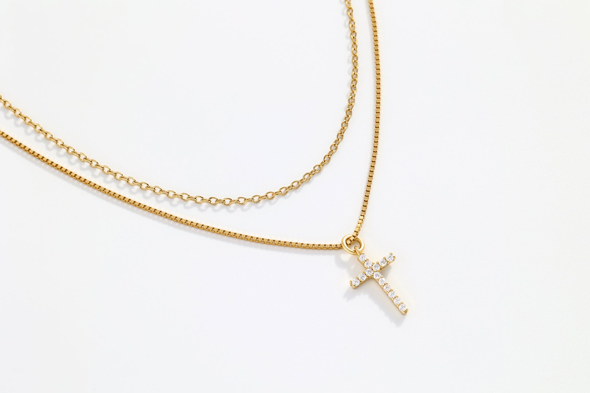 Dainty Cable Necklace with Pave Cross Chain Necklace Stacking Set