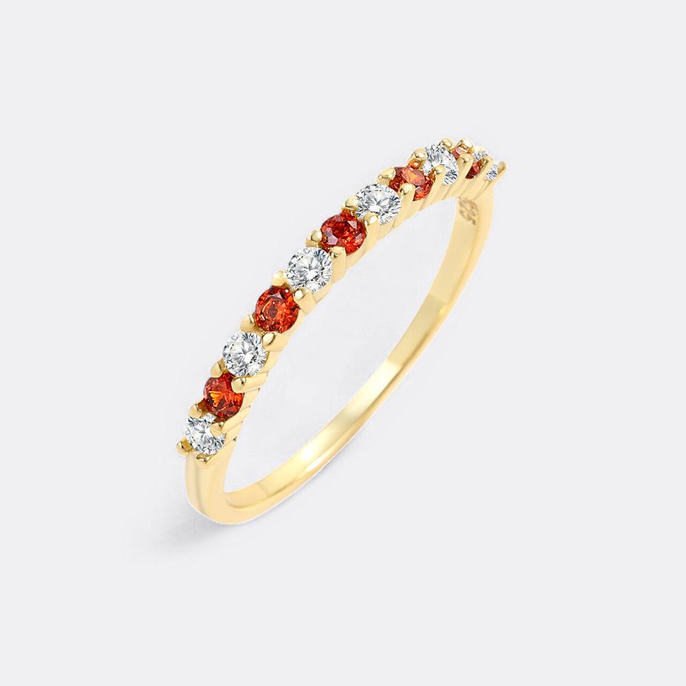 This half eternity ring offers a timeless design, alternating with six diamonds and five gemstones of your choice. Choose your child’s birthstone for a sparkly stackable Mother’s Ring.
