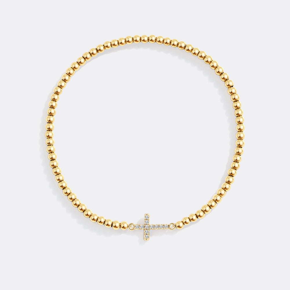 Gold Beaded Cross Stretch Bracelet