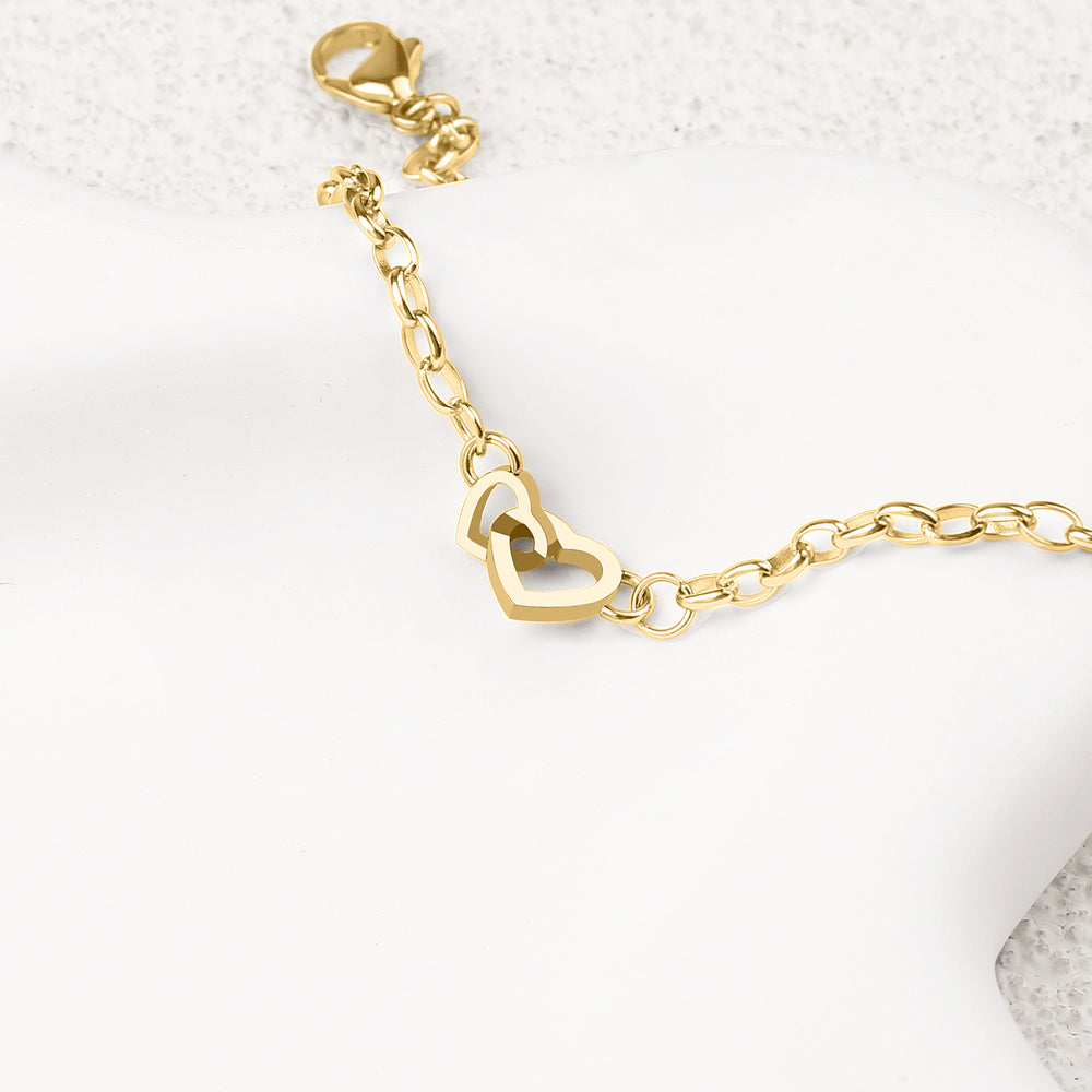 Mint & Lily's Interlocking Mini Heart Bracelet is a delicate and charming accessory, featuring tiny hearts linked together on a graceful chain. This elegant bracelet symbolizes love and connection, making it a perfect gift for someone special or a delightful addition to your own jewelry collection.