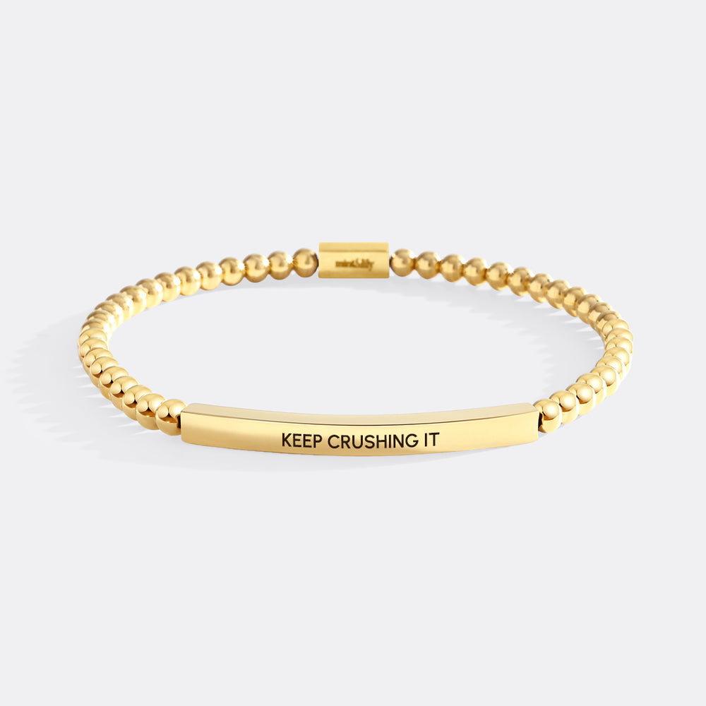 Stay driven. Stay unstoppable. The Keep Crushing It Beaded Inspire Bracelet features sleek silver beads and an empowering charm that celebrates your determination and hustle. A stylish reminder to keep pushing forward, chase your goals, and celebrate every win—perfect for go-getters and dream chasers alike.