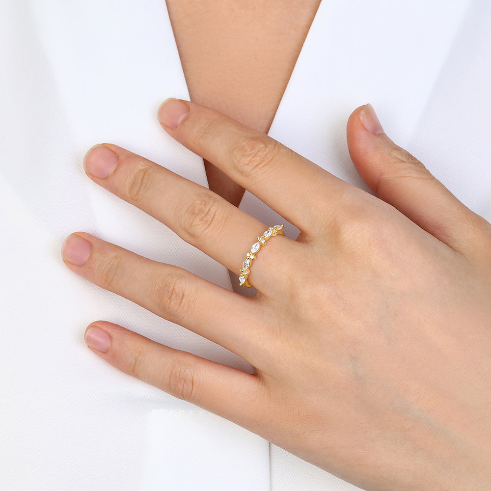 Elegant and timeless, the Marquise and Round Diamond Ring is designed to capture light and admiration from every angle. Featuring a stunning mix of marquise-cut and round-cut stones, this ring offers a refined sparkle that elevates any look — whether worn solo or stacked with other favorites.