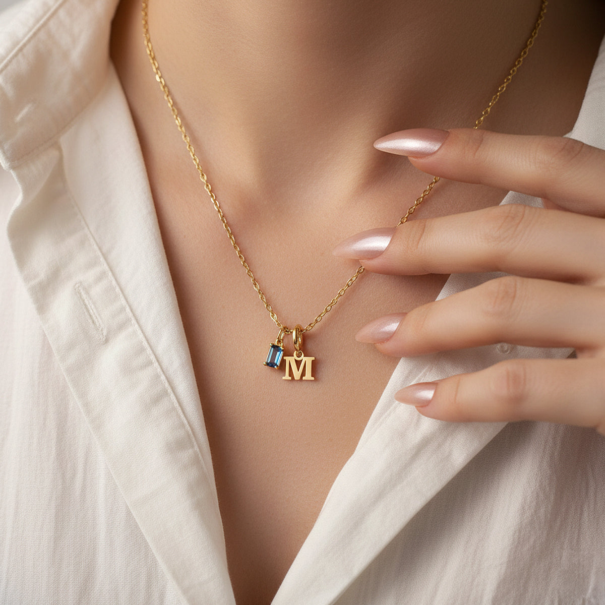 This minimalist initial necklace fits seamlessly into your everyday style. A tiny letter charm and a subtly colored birthstone in stainless steel work together for gentle, meaningful elegance—ideal for layering or wearing solo.