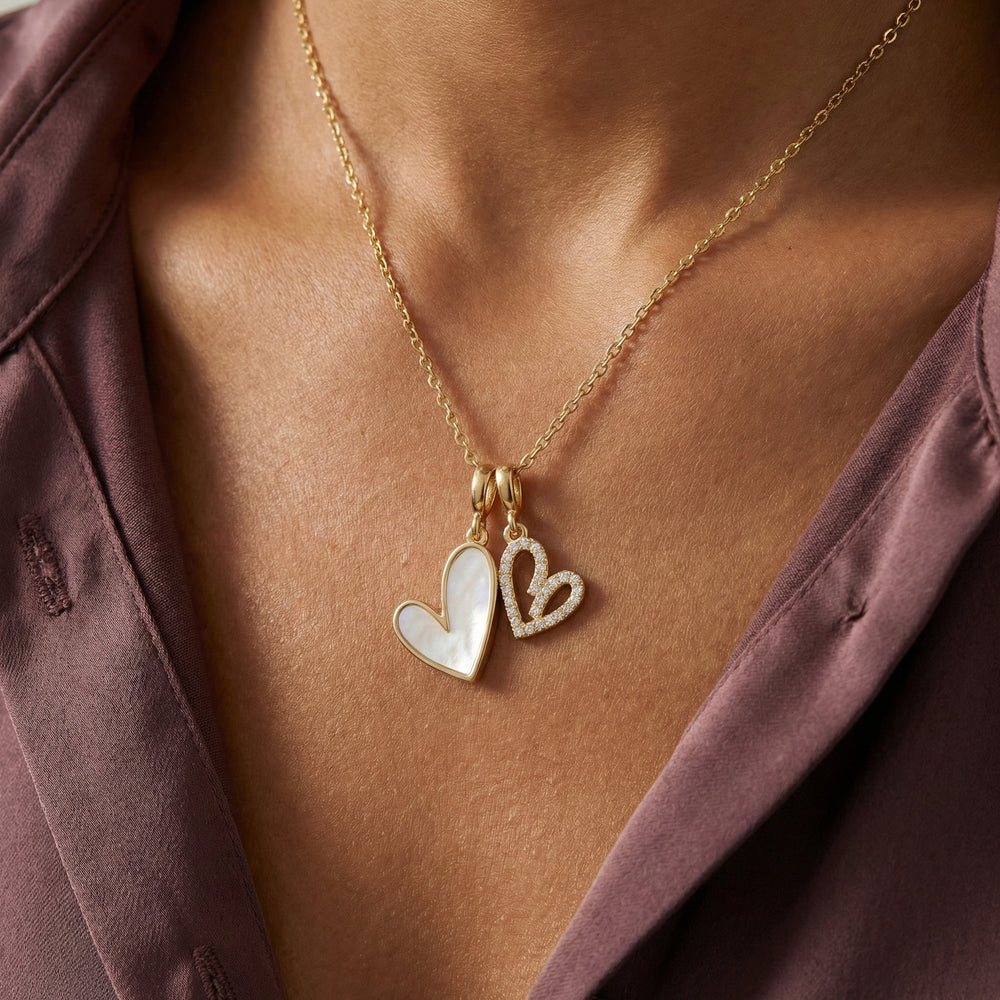 Mother of Pearl & Pave Hearts Necklace