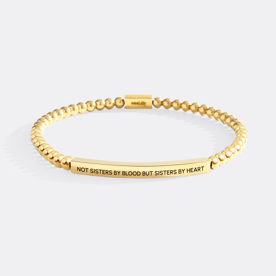 Celebrate the bond that goes beyond family. The Not Sisters By Blood But Sisters By Heart Beaded Inspire Bracelet features radiant beads and an inspiring charm that honors chosen sisterhood. A beautiful symbol of love, loyalty, and lifelong friendship—perfect for gifting to that special sister of the heart.
