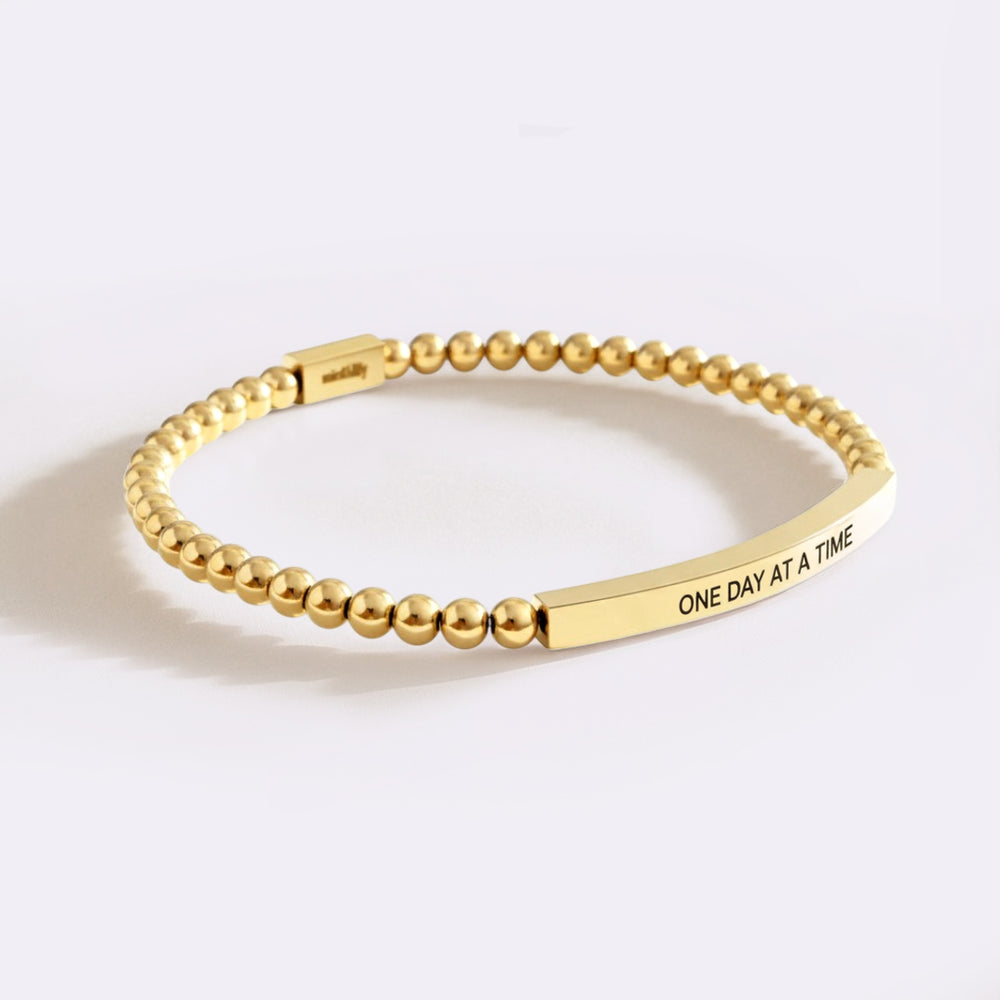 Grace for every moment. The One Day At A Time Beaded Inspire Bracelet features polished silver beads and an uplifting charm that reminds you to stay present, trust the process, and take life step by step. A timeless piece of hope and encouragement—perfect for everyday wear or as a meaningful gift for someone on their journey.