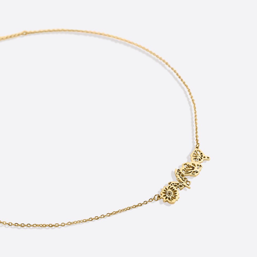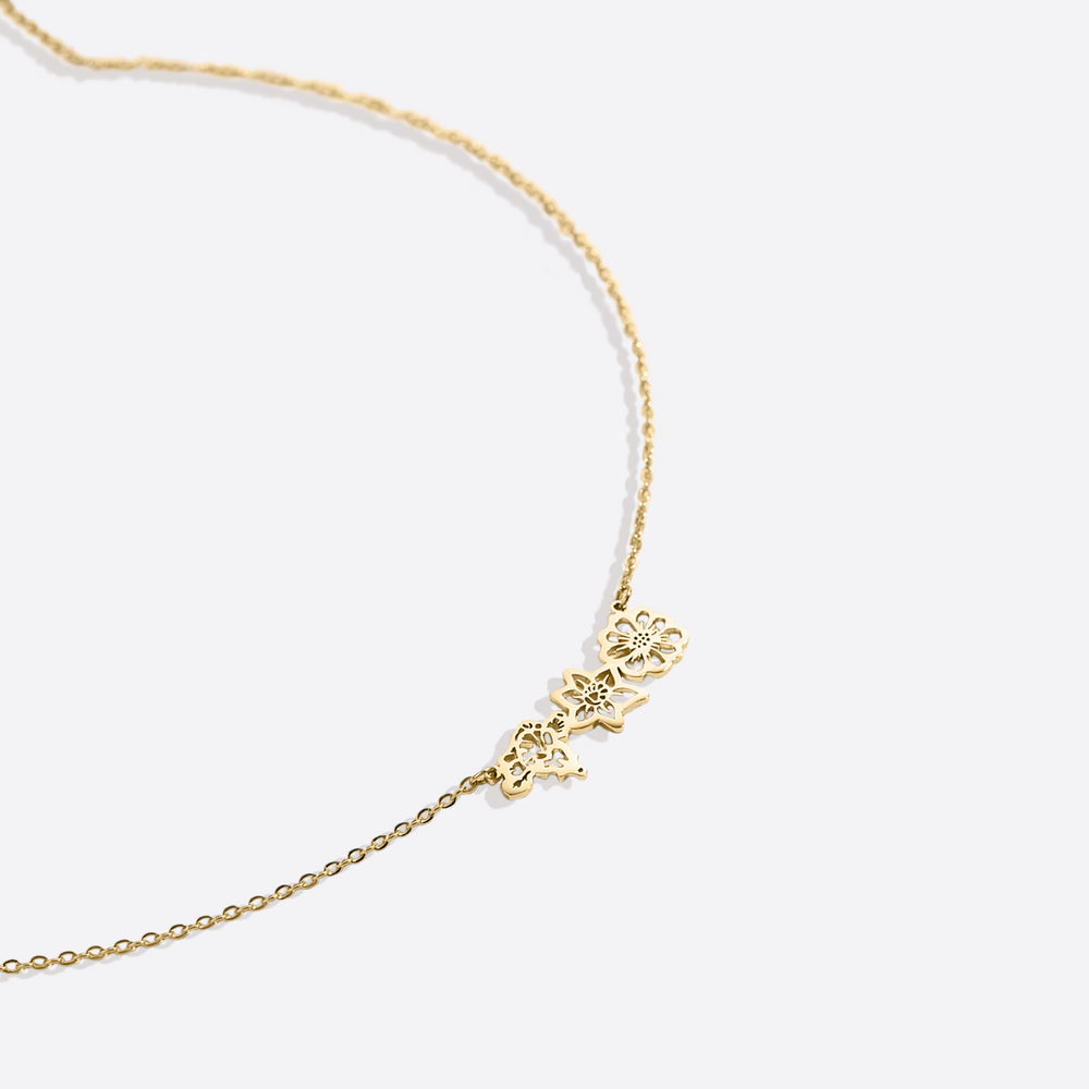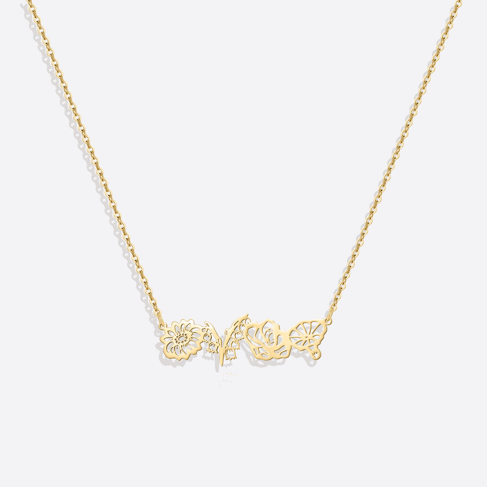 Carry a touch of nature’s elegance with Mint & Lily’s Personalized Birth Flower String Bouquet Necklace. Choose your family's birth month flowers - perfect for a personalized gift or to celebrate your individuality with floral charm.