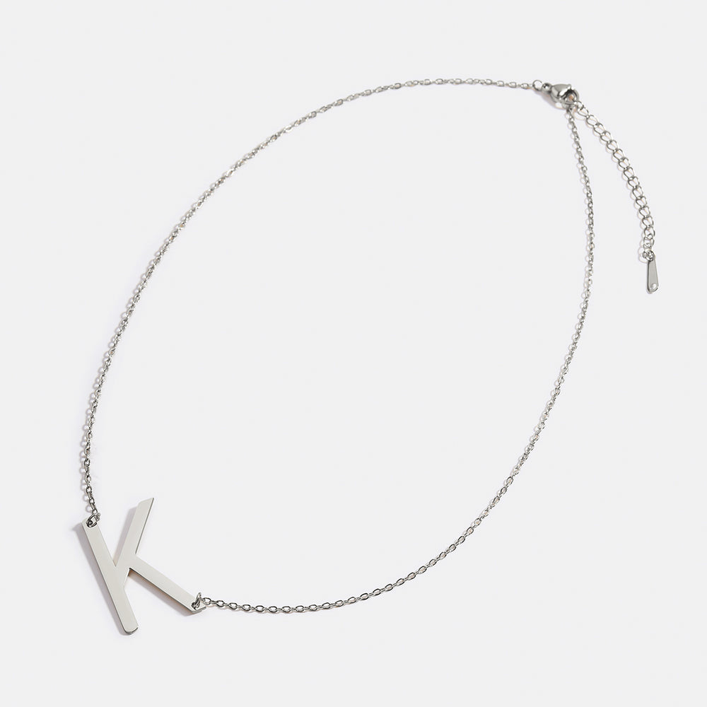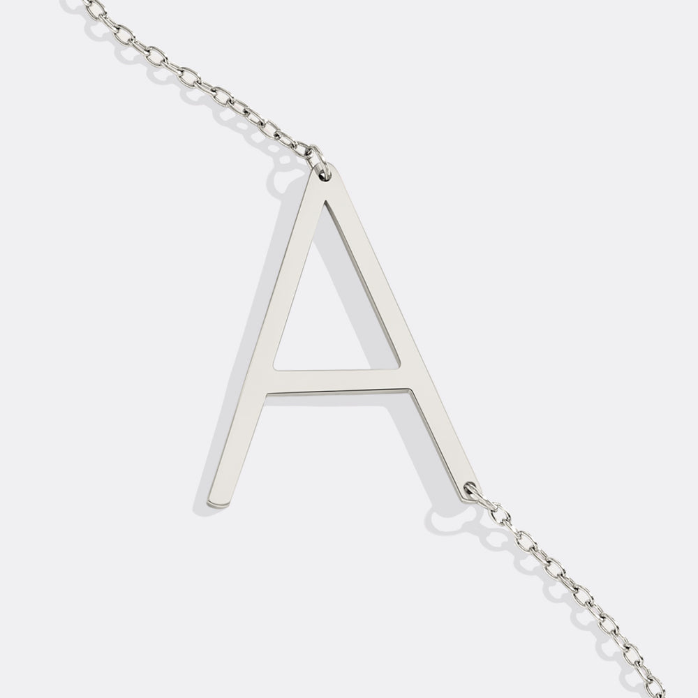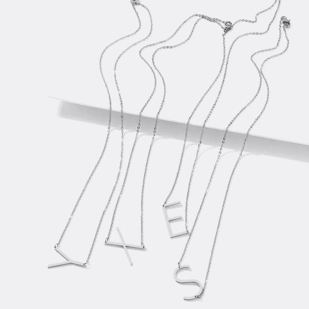 Setzen Sie mit dieser eleganten Initialenkette ein Statement. Erhältlich in 18 Karat Gold, 18 Karat Roségold und Silber mit optionaler individueller Gravur, ist diese Monogramm-Halskette ein perfektes Brautjungferngeschenk, Geburtstagsgeschenk oder Genuss für sich selbst.