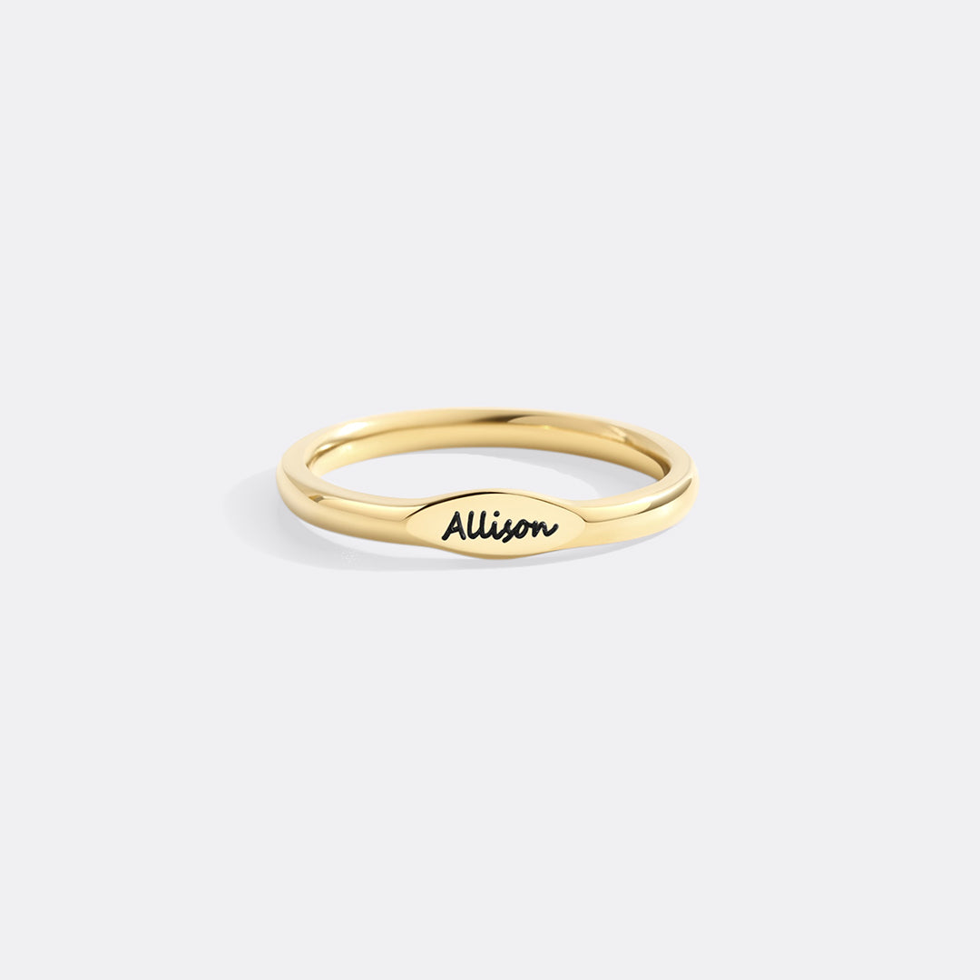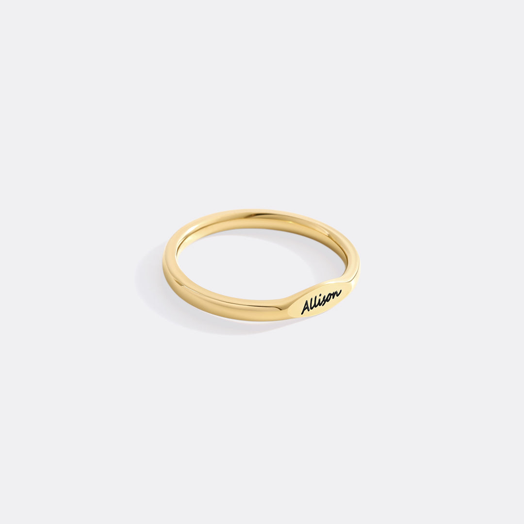 Discover refined minimalism with the Skinny Name Ring. Designed with a sleek, delicate band and subtle custom detail, this lightweight piece is perfect for stacking or wearing on its own. A timeless accessory made just for you.