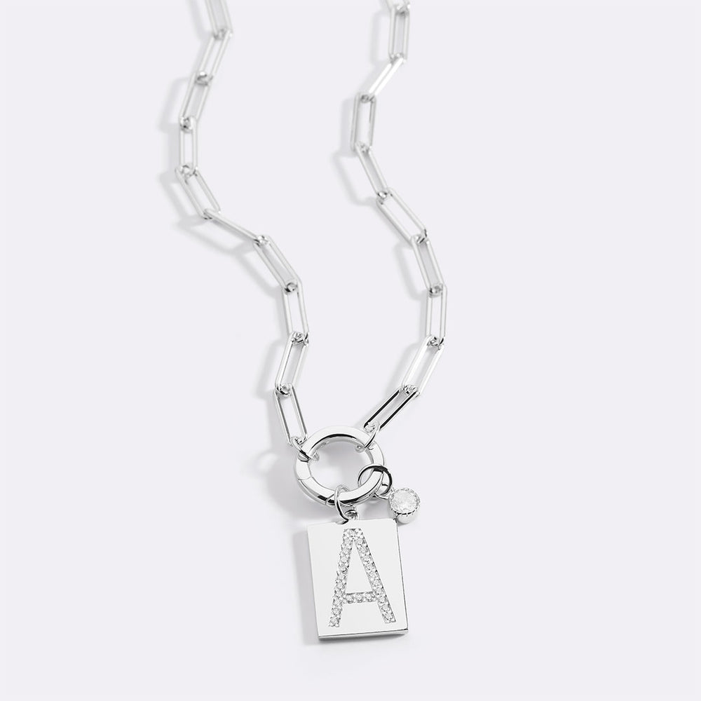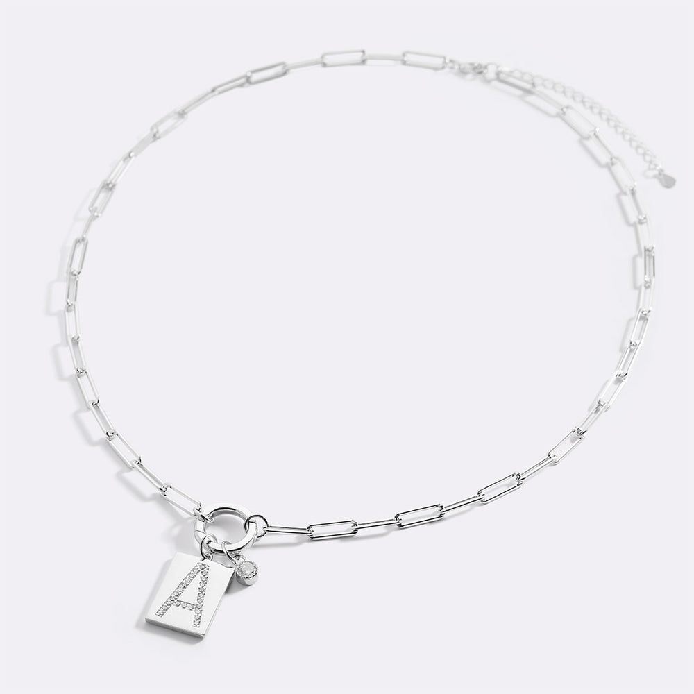 Sterling Silver Pave Initial Pendant Necklace with Paperclip Chain
