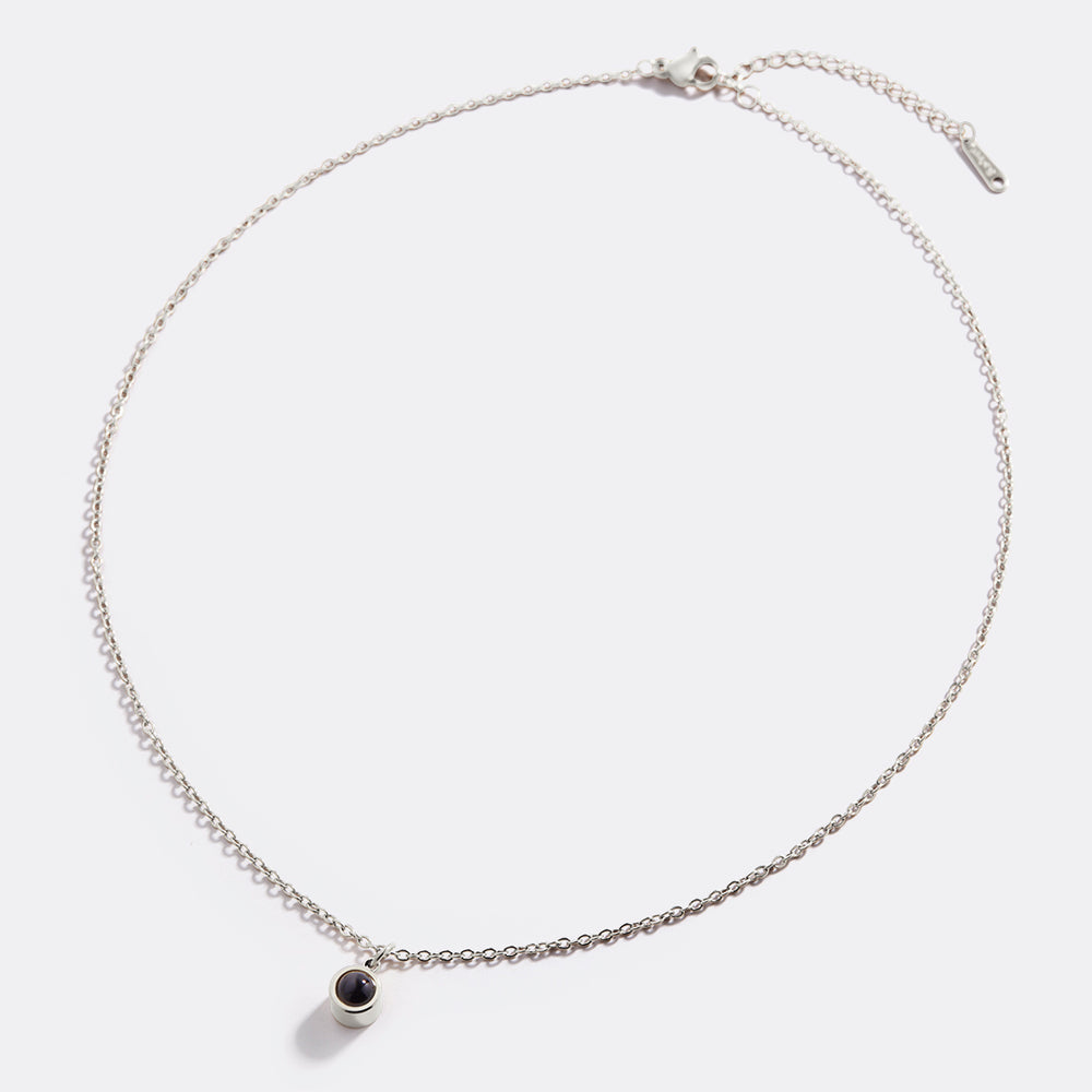Ihre personalisierte Fotokette enthält einen schwarzen Fotostein, damit Sie Ihre geliebten Erinnerungen überall hin mitnehmen können. Schauen Sie einfach in den Stein oder halten Sie den Fotostein an die Kamera Ihres Telefons, um das Bild im Inneren zu sehen.